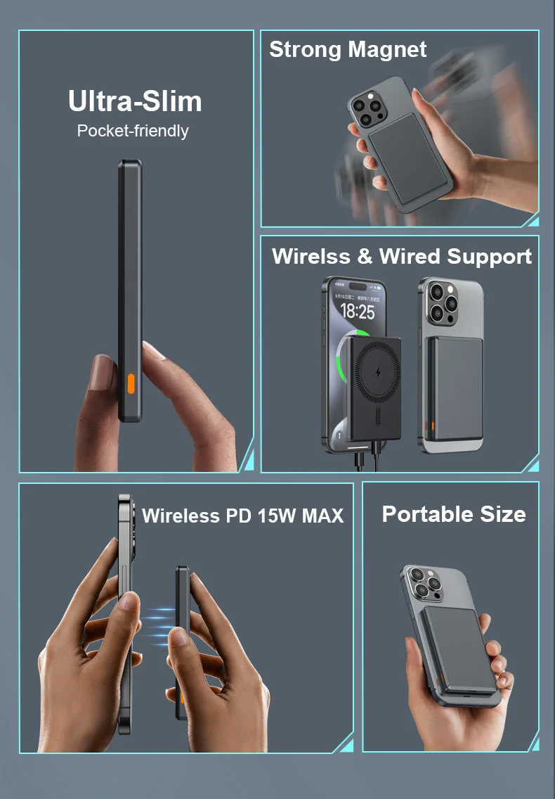 10000mAh Wireless Power Bank Magnetic PD20W Portable External Battery Fast Charging for Magsafe For iPhone 15 14 13 12 11 Xiaomi